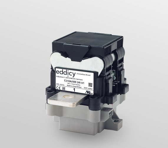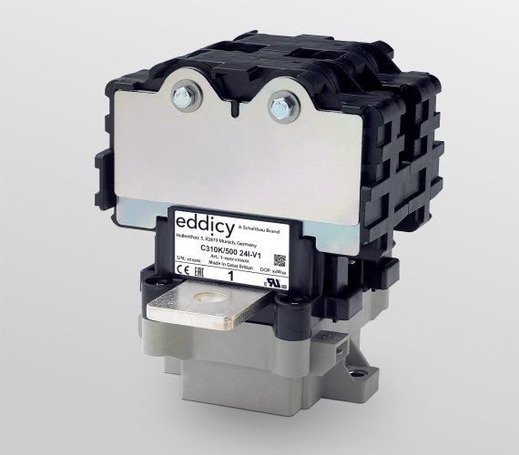 Eddicy C310 are compact 1-pole NO contactors for AC and DC (bidirectional) up to 1,500 volts rated insulation voltage with inrush current up to 2,500 amperes, continuous thermal current up to 500 amperes and short-time current up to 3,000 amperes